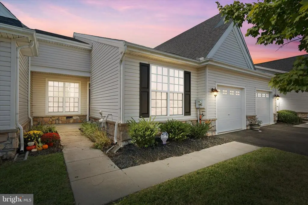 Welcome to 32 Grand National Lane in the active adult community of Steeple Glenn. This sought after community is located in Newark and is in close proximity to Christiana Hospital, Christiana Mall, I-95 and Route 1. This interior townhome features one floor living, approximately 1400 Sq Ft . with two bedrooms and 2 full bathrooms, 9 ft ceilings, hardwood flooring in the kitchen and great room area plus 42 " kitchen cabinets and center island with bar seating. The floorplan is an open concept, leading to the large family room with a slider door that exits to the steps and yard, backing to the woods. The primary bedroom off the kitchen has a huge walk-in closet and en suite bathroom with shower and comfort height sink. The 2nd bedroom, has access to it's own bathroom and there is a laundry and utility room, along with an oversized single car garage. The neighborhood includes a club house and walking trails. The monthly HOA fee includes trash disposal, lawn care, mulching, snow removal and exterior maintenance.