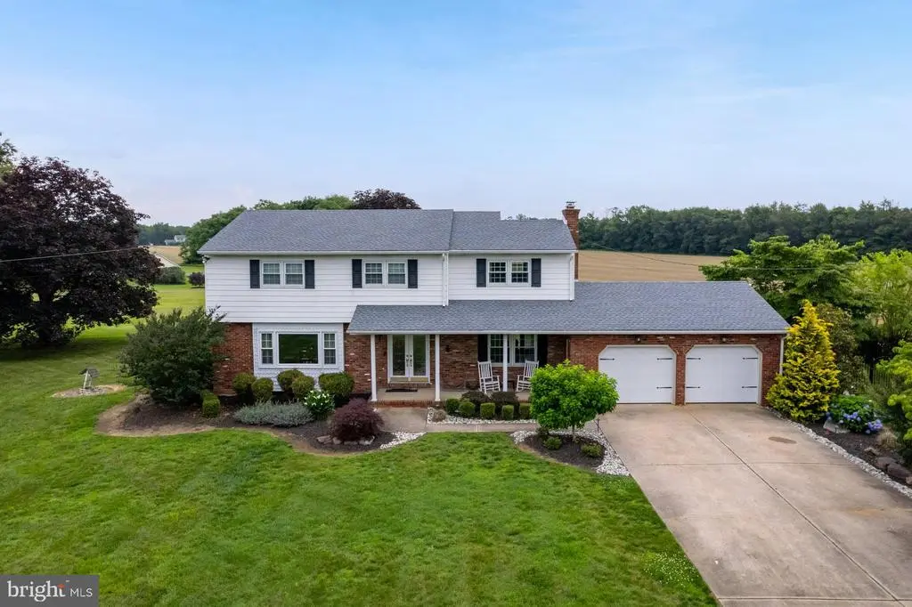 Charming 4-Bedroom Home on 1 Acre Surrounded by Tranquil Farmland. Welcome home to this beautifully updated 4-bedroom, 2.5-bath colonial nestled on a private acre, surrounded by serene farmland. As you arrive, a covered front porch and elegant double-door entry invite you inside. Step into a warm and welcoming interior featuring neutral tones, vinyl hardwood floors, and a classic wooden staircase. The main floor offers both a cozy living room and a spacious family room with a wood-burning stove and French doors that open to an expansive paver patio—perfect for everyday living and entertaining. The updated kitchen is the heart of the home, featuring granite countertops, a tile backsplash, and a custom drink bar with built-in mini fridge. A convenient powder room and laundry area complete the main level. Upstairs, you’ll find four generously sized bedrooms, including a luxurious primary suite with a walk-in closet and a fully remodeled en-suite bathroom with a walk-in shower. The hall bath has also been thoughtfully updated with dual sinks, a marble countertop, and a stylish tile shower/tub combo. Additional highlights include a new roof (2023), newly replaced windows with a lifetime warranty, an attached 2-car garage, a full basement with ample storage and a partially finished game area, and a large fenced-in backyard with beautiful ornamental aluminum fencing—ideal for relaxing or entertaining in privacy. Located just minutes from shopping, I-295, and only 25 minutes to Philadelphia, this home offers the perfect blend of peaceful country living and modern convenience. Set up a private showing today!