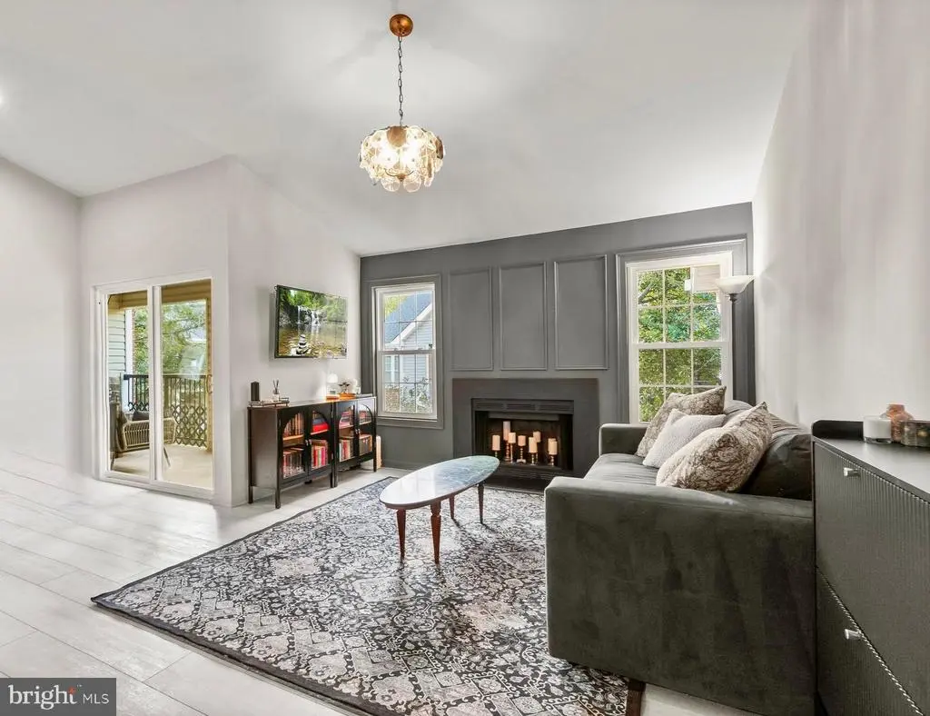 Step inside to soaring vaulted ceilings and an airy open floor plan, where modern LVP floors, designer light fixtures, and abundant natural light set the tone. The sun-filled living room invites you to unwind by the wood-burning fireplace, beautifully accented with a sleek surround and custom millwork (2024). Just beyond, a flexible dining area doubles as a perfect home office and flows seamlessly to the oversized balcony, ideal for morning coffee or evening cocktails with lush, tree-lined views. The entire unit was newly repainted in 2024, in sophisticated hues that feel straight out of a designer’s playbook, bringing in warmth and modern allure.